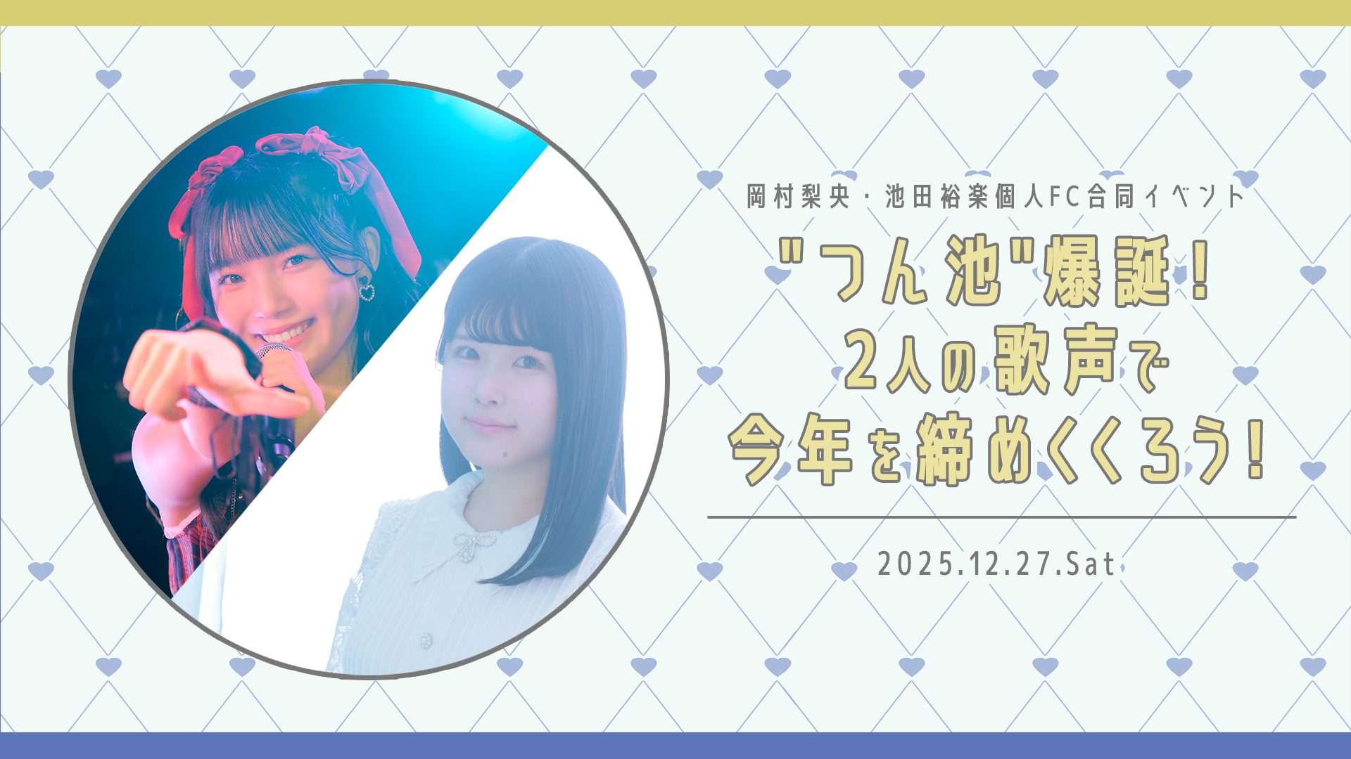 2025年12月27日(土)池田裕楽・岡村梨央個人FC合同イベント「"つん池"爆誕!2人の歌声で今年を締めくくろう!」を開催します。