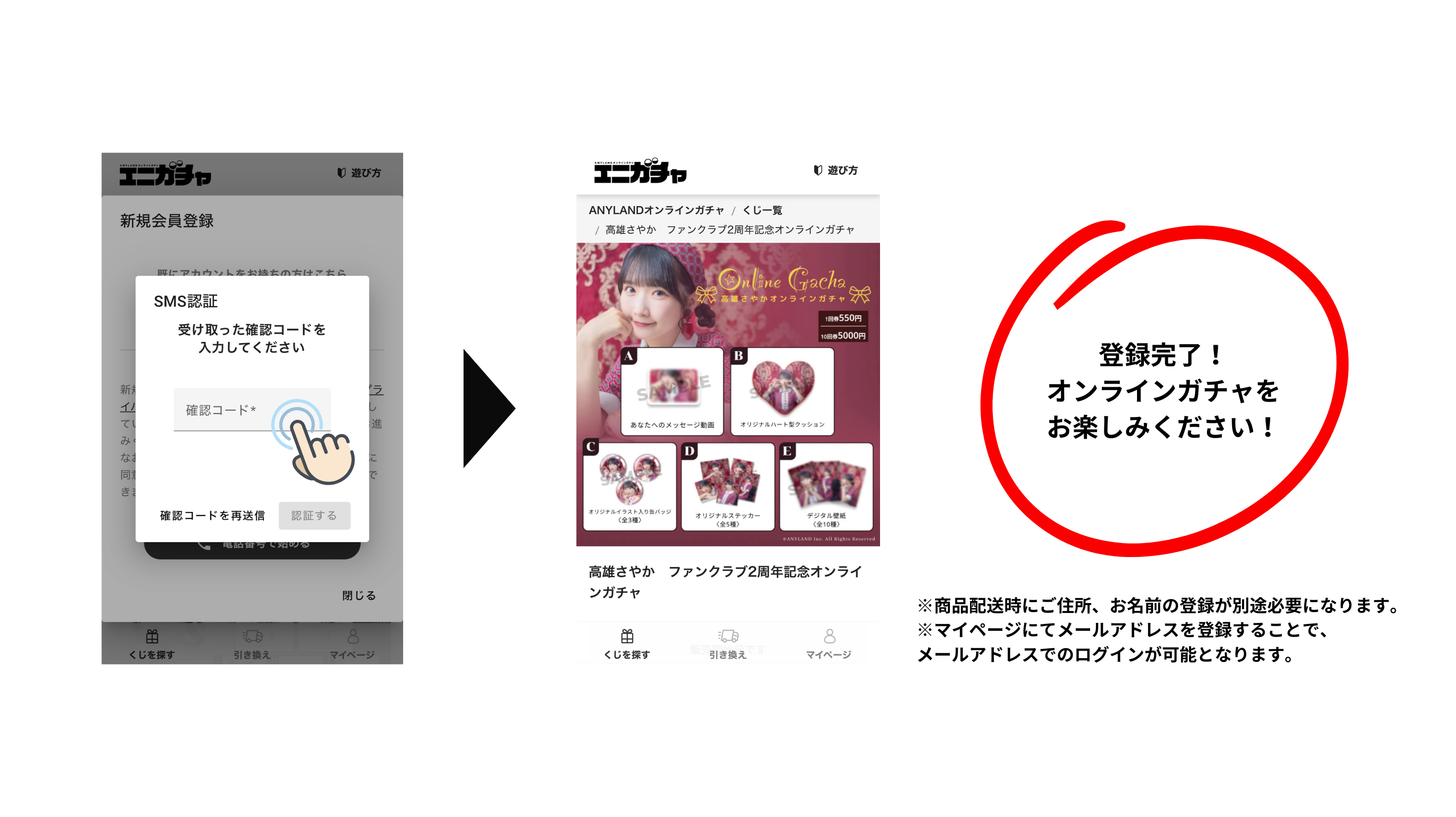 <ANYLANDオンラインガチャ登録手順>